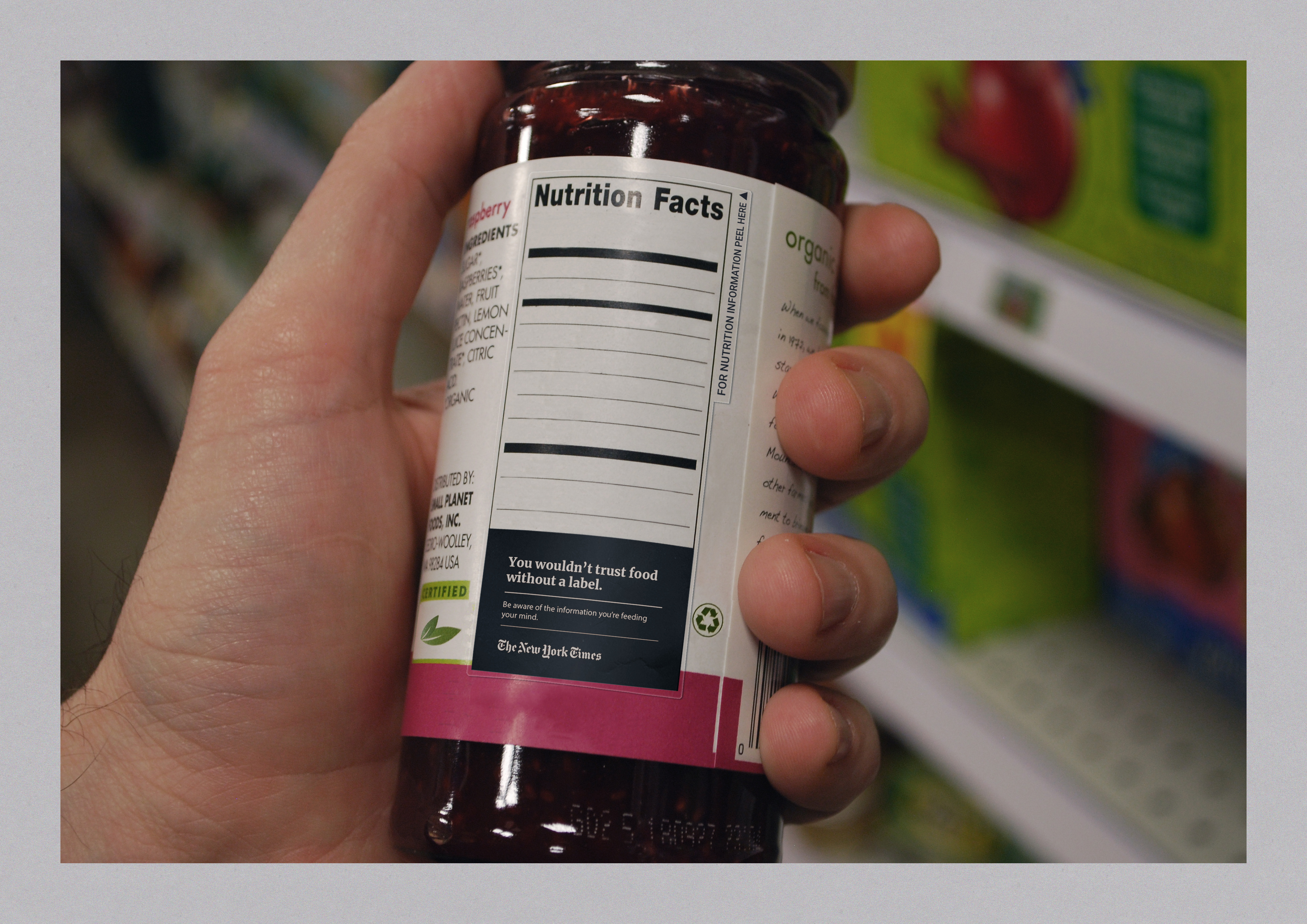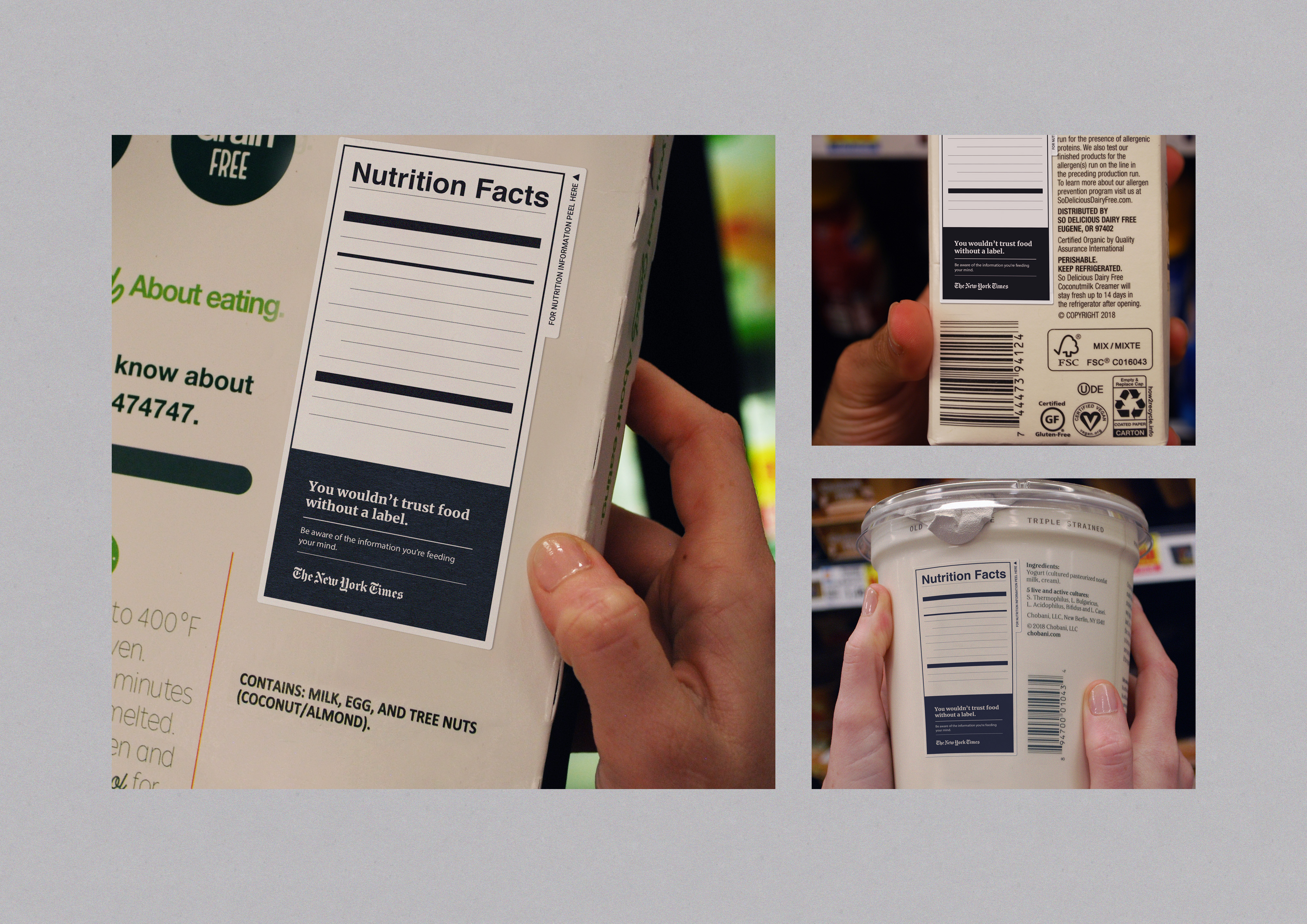 Product's Nutrition Fact Labels will be used as advertising space to bring consciousness to the type of news people are consuming.